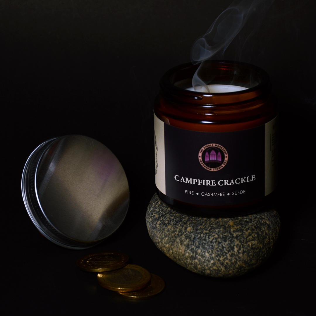 'Revel where the warmth of campfire and the serenity of nature intertwine, in the rugged sophistication of flames crackling under a starry sky. Let the scent of burning wood and soft suede present the grandeur of the mountains in which you retreat.'